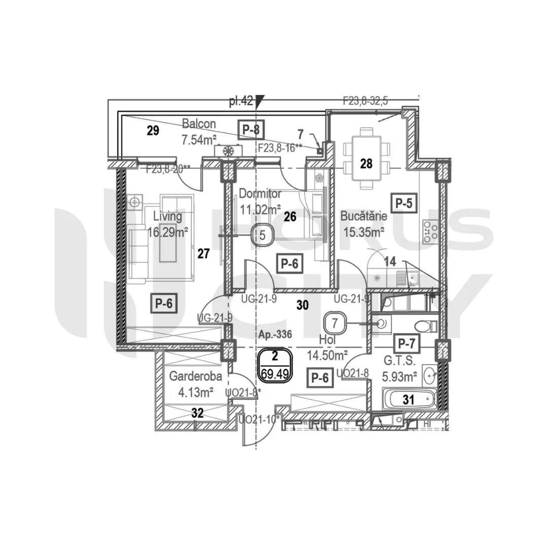 Total area: 69.49 m²