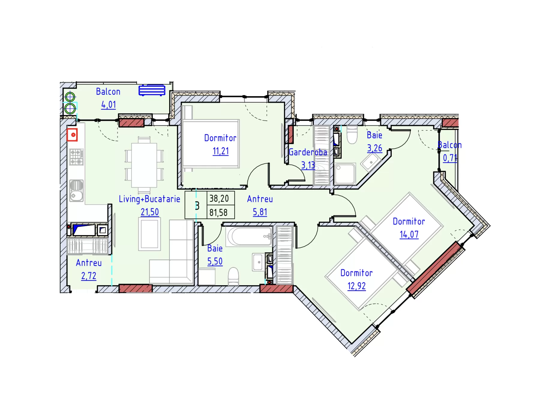Общая площадь: 81,58 м²